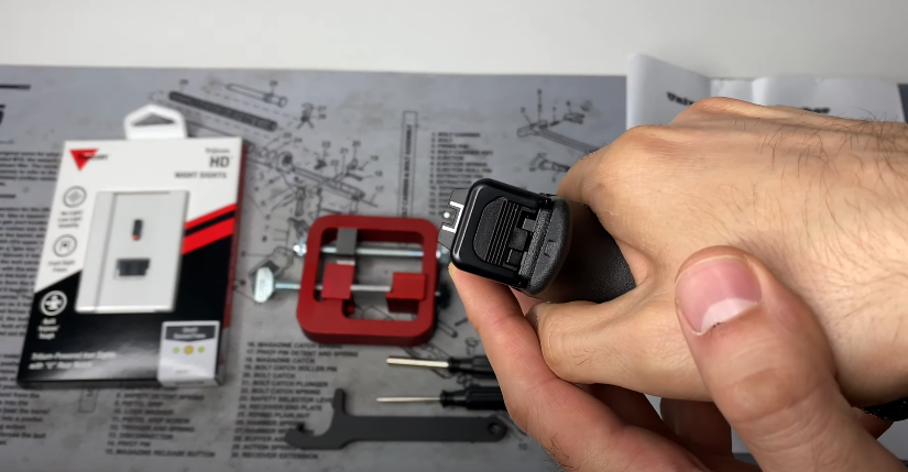 It allows you to not only change the sights of a handgun but also deal with semi-auto pistols. There’s an additional sight prong for these guns, which you rotate as you change the sight. This extra feature makes it easy to hold Glock slides.